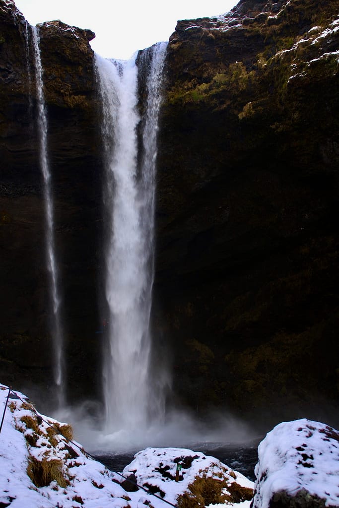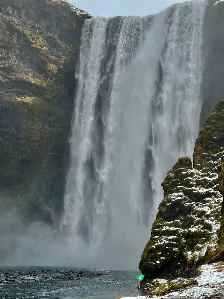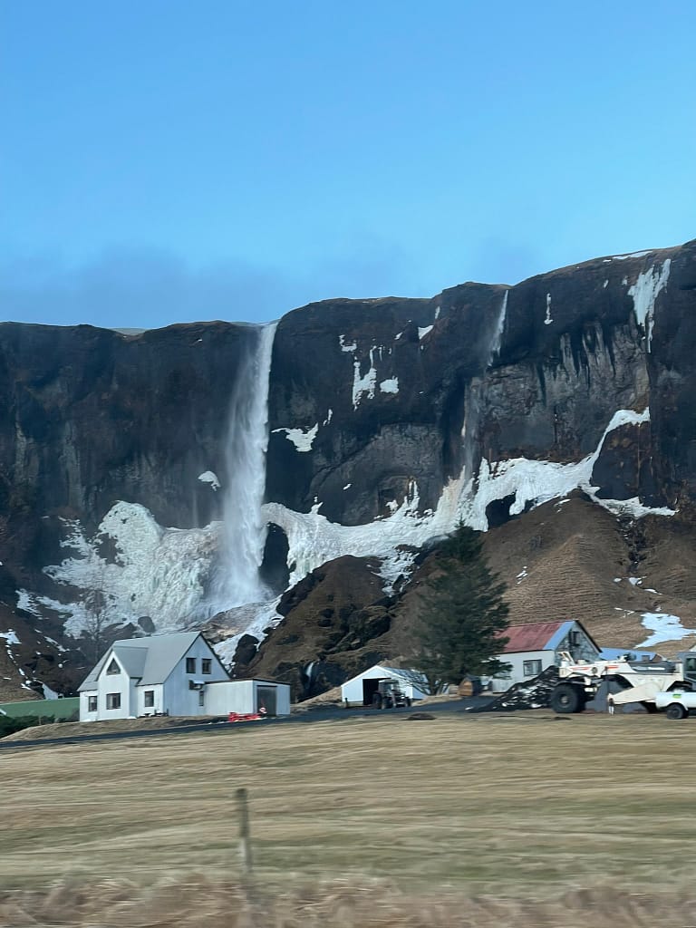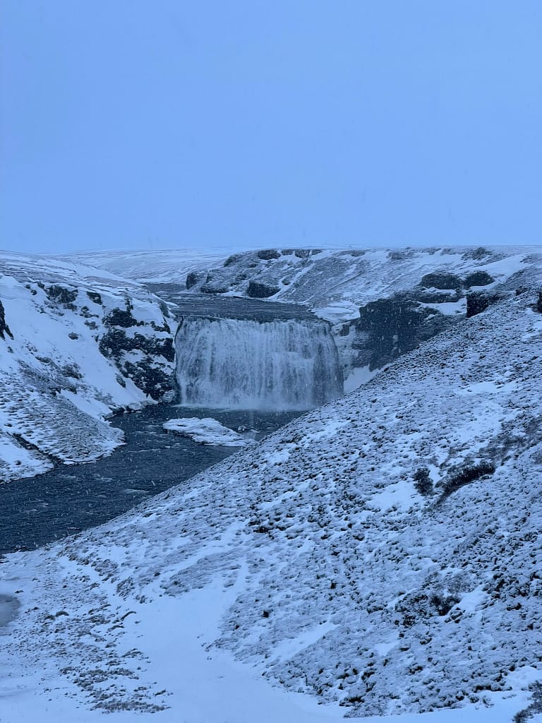Next was Skogafoss, a massive waterfall where you can climb to the top for a different perspective. We skipped the hike but admired the view from below. We also passed by Seljalandsfoss, which looked stunning.