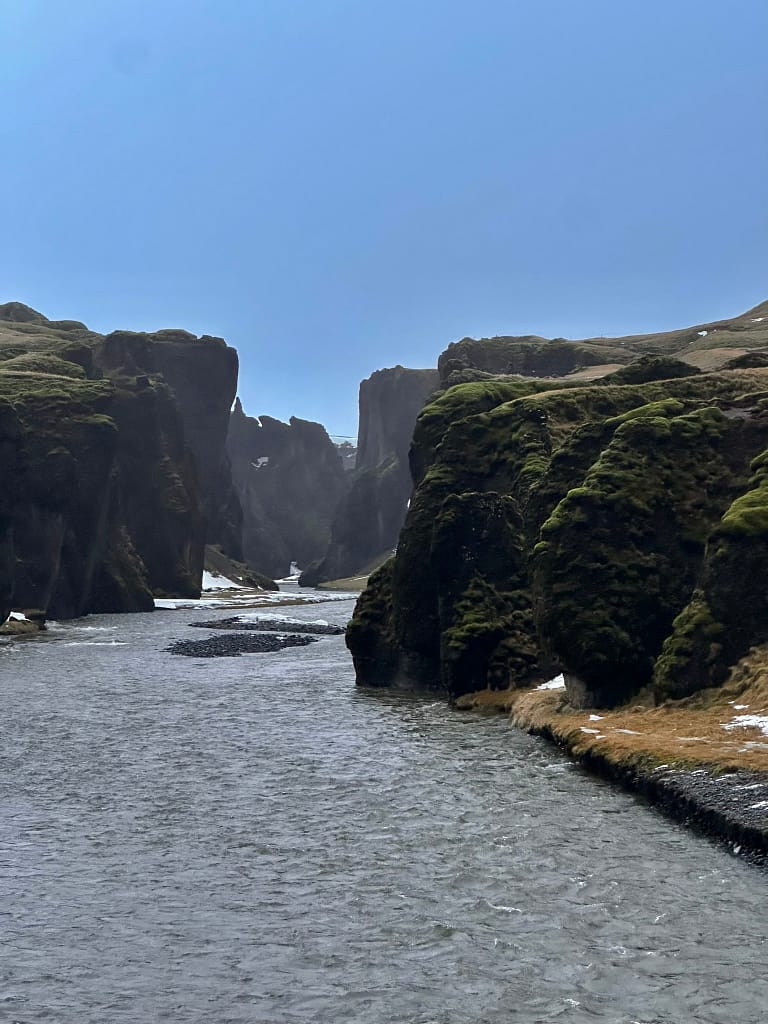 Next, we visited Fjallsárlón, another glacier lagoon, before heading to Fjaðrárgljúfur Canyon—an incredible scenic spot. Due to short daylight hours, we could only stay for 15 minutes, but it was worth it!