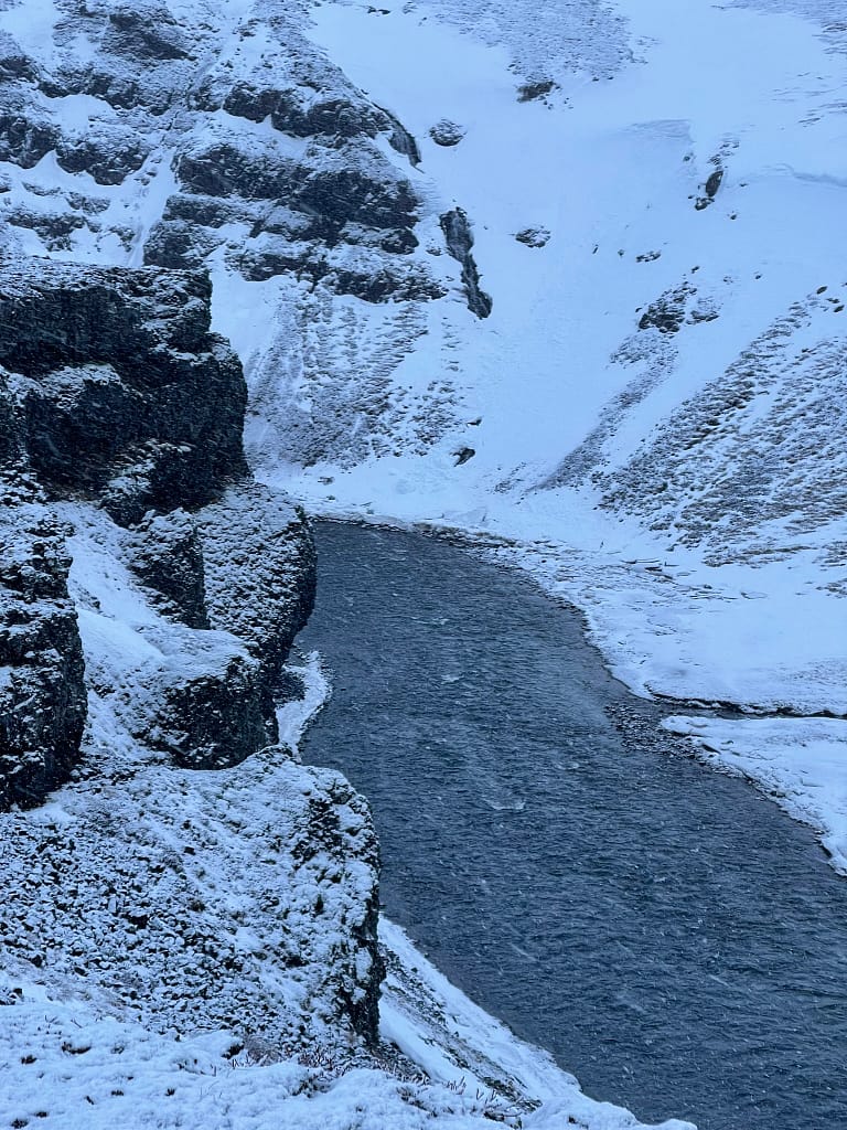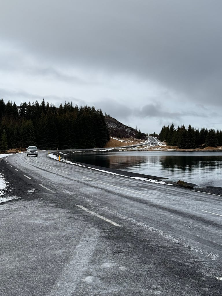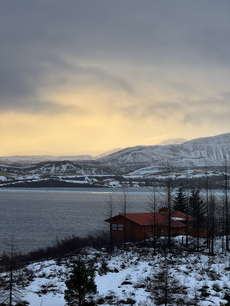 Since it was our departure day, we stayed close to Reykjavik. The morning started with a snowy drive to Thorufoss, a smaller but postcard-perfect waterfall. Then we drove past Þingvallavatn Lake, an unexpectedly beautiful stop that made us feel like we were inside a painting.